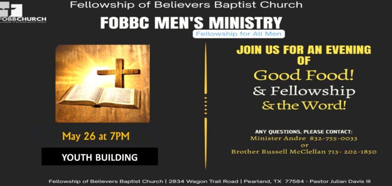 FOBBC Men’s Fellowship is a group of men united in Christ that exemplify brotherly love for one another and our church family.